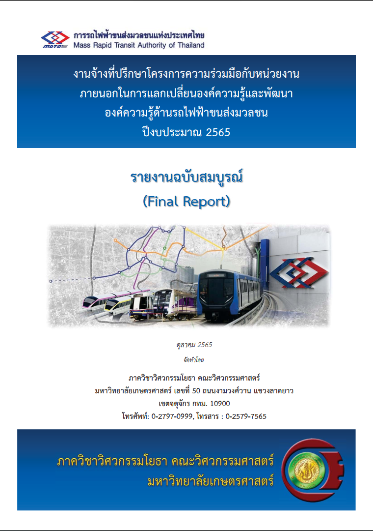 ผู้แต่ง : การรถไฟฟ้าขนส่งมวลชนแห่งประเทศไทย โดย ศูนย์ให้คำปรึกษาและพัฒนาผู้บริหารทางธุรกิจแห่งมหาวิทยาลัยธรรมศาสตร์